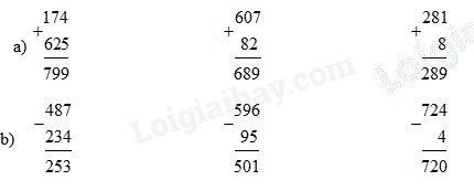 Tính. Đặt tính rồi tính: a) 174 + 625 607 + 82 281 + 8 b) 487 – 234 596 – 95 724 – 4 Viết số thành tổng các trăm, chục, đơn vị (theo mẫu):