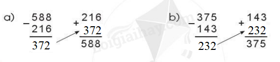 Thực hiện phép trừ rồi kiểm tra lại kết quả bằng phép cộng: