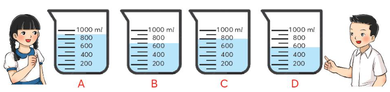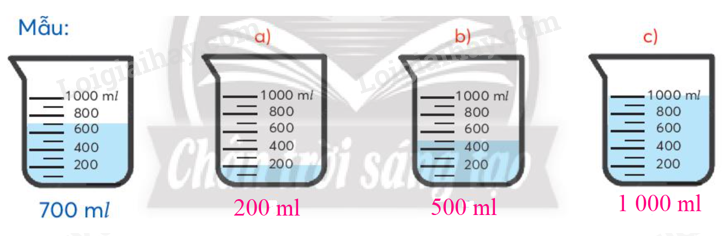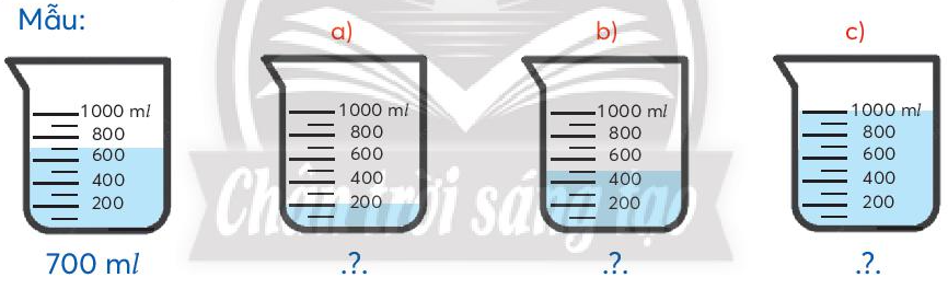 Quan sát hình vẽ để xác định số ml nước trong mỗi bình (theo mẫu).