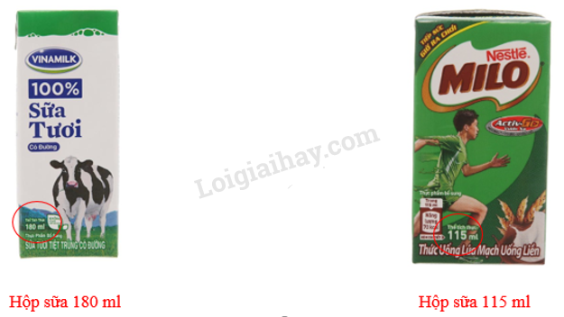 Đọc dung tích ghi trên một vài hộp sữa, chai nước.