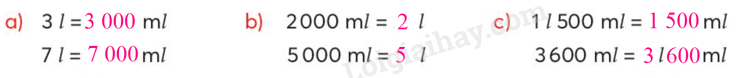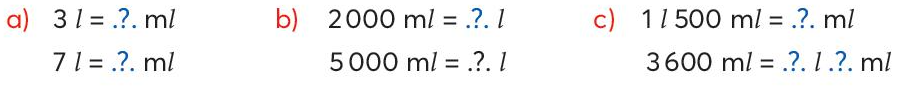 Áp dụng kiến thức: 1$\ell $ = 1 000 ml