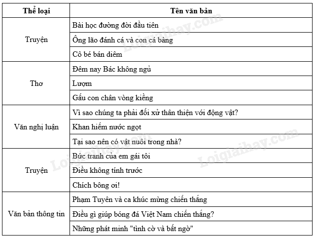 Em xem lại mục lục, liệt kê các kiểu văn bản và tên tác phẩm của học kì 2, có thể kẻ bảng để trình bày rõ ràng hơn.