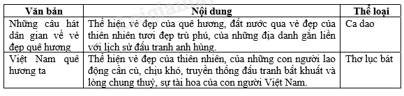 Đọc lại hai văn bản trên, điền nội dung và thể loại vào bảng.