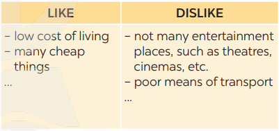 (Làm việc nhóm. Thảo luận và viết những gì bạn thích hoặc không thích về nông thôn.)