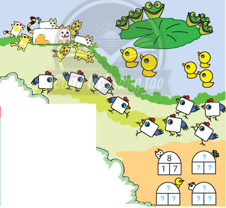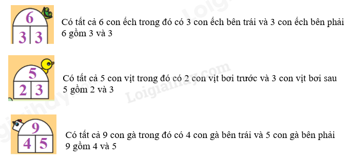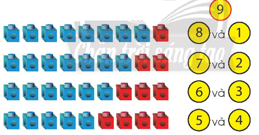 Quan sát tranh rồi nêu các cách tách – gộp 9.