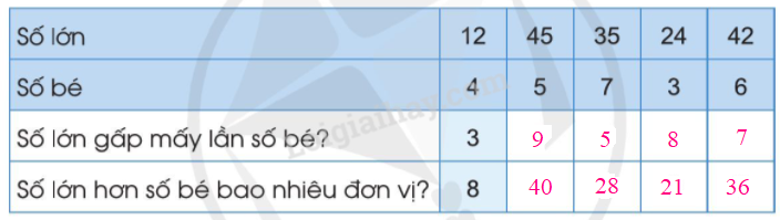 – Muốn biết số lớn gấp mấy lần số bé, ta lấy số lớn chia cho số bé.