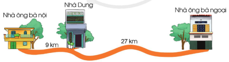 b) Quãng đường từ nhà ông bà ngoại đến nhà ông bà nội = quãng đường từ nhà Dung đến nhà ông bà ngoại + quãng đường từ nhà Dung đến nhà ông bà nội