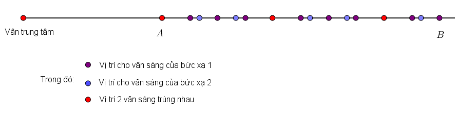 + Sử dụng lí thuyết về giao thoa đồng thời hai nguồn đơn sắc