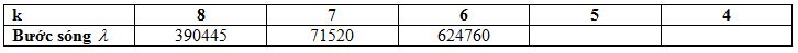 \({k_1} = 4 \to 400 \le \lambda  = \dfrac{{{k_1}{\lambda _1}}}{k} = \dfrac{{4.680}}{k} \le 760 \to 3,58 \le k \le 6,8 \to k = 4,5,6(loai)\)   \({k_1} = 8 \to 400 \le \lambda  = \dfrac{{{k_1}{\lambda _1}}}{k} = \dfrac{{8.680}}{k} \le 760 \to 7,16 \le k \le 13,6(*) \to k = \underbrace {8,9,10,11,12,13}_{co6giatri \to co6bucxa}\)