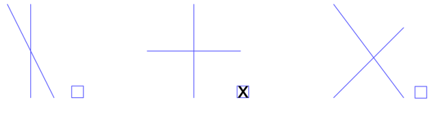 Dùng ê ke để kiểm tra rồi đánh dấu (x) vào ô trống dưới hai đường thẳng vuông góc với nhau: