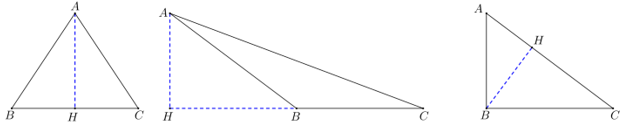 Vẽ đường cao AH của tam giác ABC trong mỗi trường hợp sau: