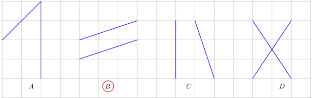 Xác định các đường thẳng song song rồi khoanh tròn vào đáp án thích hợp.