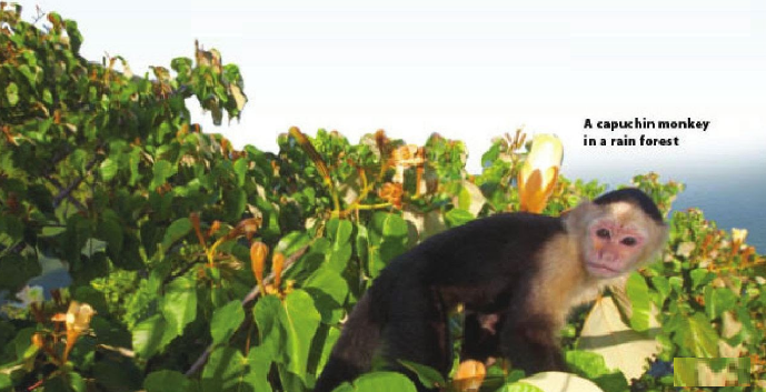 Look at the photo. Which animals do you think are in this rain forest? Make a list.