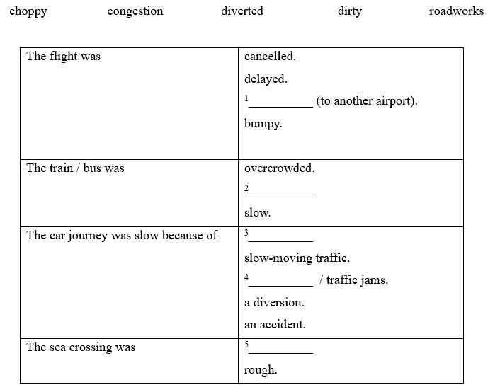 2 Write a paragraph describing the worst journey you can remember. Include phrases from exercise 1.