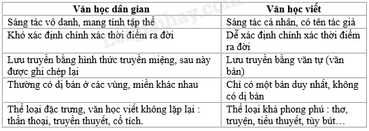 Nêu những điểm phân biệt văn học dân gian với văn học viết.