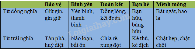 Tìm từ đồng nghĩa, trái nghĩa với mỗi từ trong bảng sau và viết vào vở: