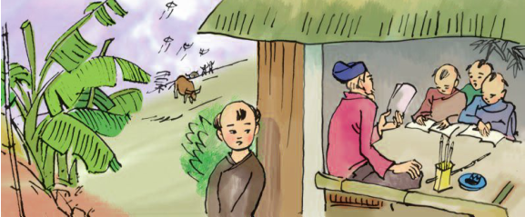 Sau vì nhà nghèo quá, chú phải bỏ học. Ban ngày, đi chăn trâu, dù mưa gió thế nào, chú cũng đứng ngoài lớp học nghe giảng nhờ. Tối đến, chú đợi bạn học thuộc bài mới mượn vở về học. Đã học thì cũng phải đèn sách như ai nhưng sách của chú là lưng trâu, nền cát, bút là ngón tay hay mảnh gạch vỡ; còn đèn là vỏ trứng thả đom đóm vào trong. Bận làm, bận học như thế mà cánh diều của chú vẫn bay cao, tiếng sáo vẫn vi vút tầng mây. Mỗi lần có kì thi ở trường, chú làm bài vào lá chuối khô và nhờ bạn xin thầy chấm hộ. Bài của chú chữ tốt văn hay, vượt xa các học trò của thầy.