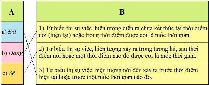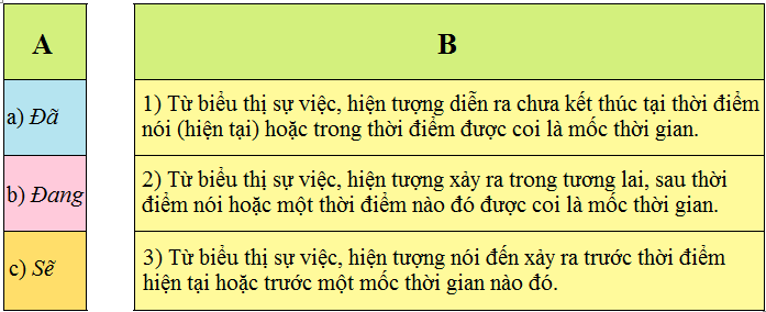 Chọn từ ở câu A phù hợp với lời giải nghĩa ở cột B.