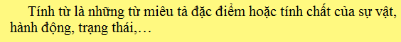 d) Tính từ là những từ chỉ đặc điểm, tính chất của sự vật, hành động, trạng thái,…
