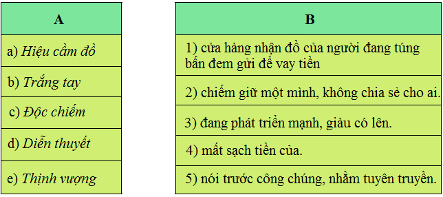 Chọn lời giải nghĩa ở cột B phù hợp với từ ngữ ở cột A.