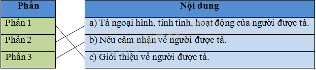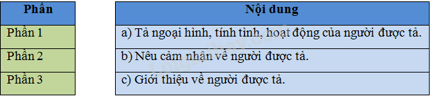 – Mỗi phần trong bài văn tả người thường có nội dung gì?