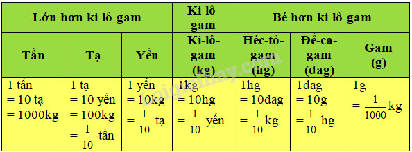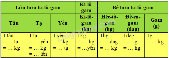 Xem lại về bảng đơn vị đo khối lượng đã học ở lớp dưới và mối liên hệ giữa các đơn vị đo liền nhau.