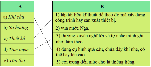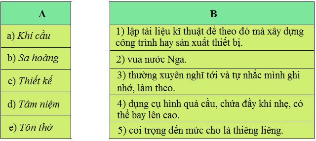 Chọn lời giải nghĩa ở cột B phù hợp với từ ngữ ở cột A.