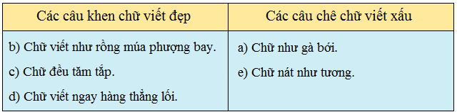 Xếp các câu dưới đây vào bảng phân loại.