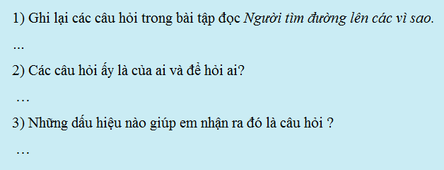 Các câu hỏi có trong bài tập đọc Người tìm đường lên các vì sao: