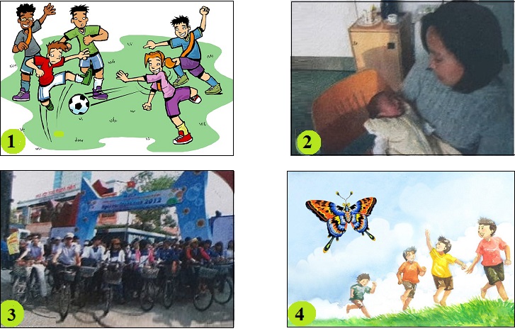 Quan sát các bức tranh sau và đặt câu hỏi cho mỗi bức tranh với các từ: ai, làm gì, thế nào, ở đâu