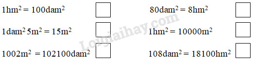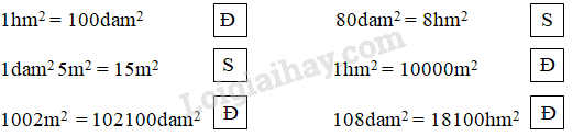 1hm = 100dam2  hay 1dam = \(\dfrac{1}{{100}}\)hm2  ;