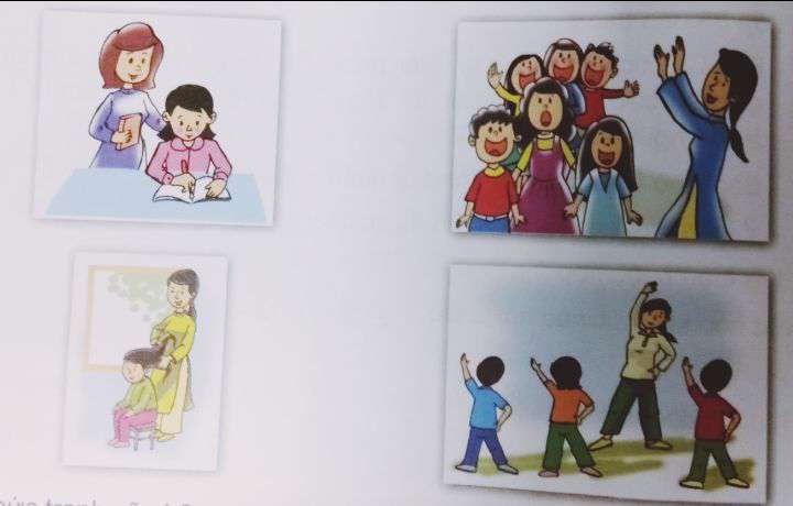 – Tranh 2: Cô giáo dạy học sinh học hát