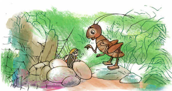 – Năm trước, gặp khi trời làm đói kém, mẹ em phải vay lương ăn của bọn nhện. Sau đấy, không may mẹ em mất đi, còn lại thui thủi có mình em. Mà em ốm yếu, kiếm bữa cũng chẳng đủ. Bao năm nghèo túng vẫn hoàn nghèo túng. Mấy bọn nhện đã đánh em. Hôm nay bọn chúng chăng tơ ngang đường đe bắt em, vặt chân, vặt cánh ăn thịt em.