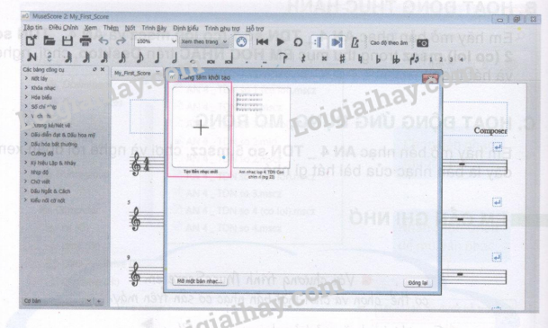 A. Hoạt động cơ bản – Bài 2: Bước đầu tạo bản nhạc với phần mềm MuseScore