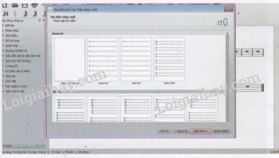 –  Khởi động MuseScore rồi nháy chuột chọn như hình dưới để chọn bản nhạc mới.