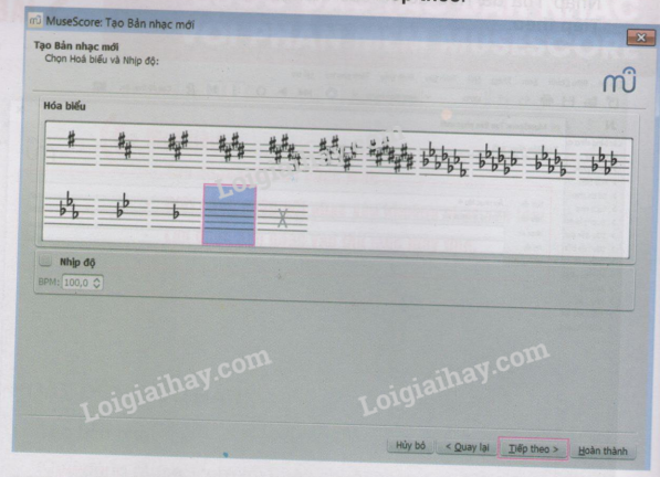 –  Chọn hóa biểu và nhịp độ, rồi nhấn Tiếp theo