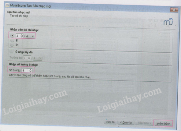 –  Tạo Số chỉ nhịpSố lượng ô nhịp, rồi nhấn Tiếp theo