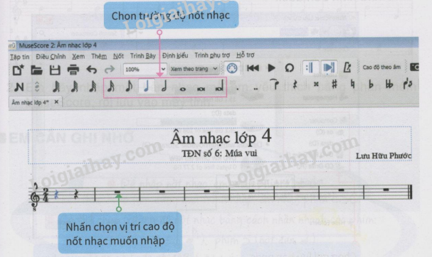 –   Bước 2. Nhấn chọn trường độ nốt nhạc trên thanh công cụ