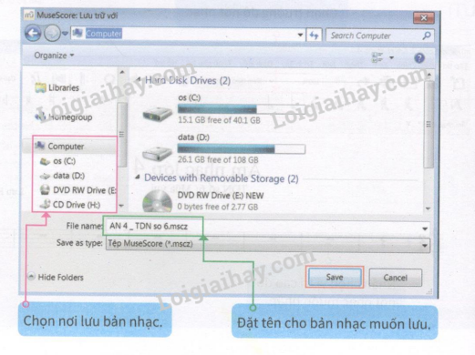 – Bước 2. Chọn nơi lưu, đặt tên Bản nhạc muốn lưu rồi nhấn Save như hình bên dưới