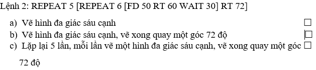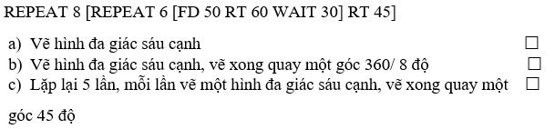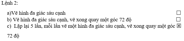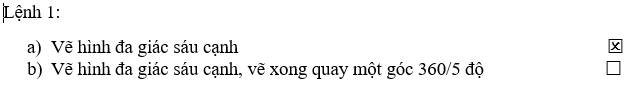 Rùa thực hiện công việc nào dưới đây khi nhận được các lệnh sau: