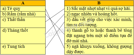 Chọn lời giải nghĩa ở cột B phù hợp với từ ngữ ở cột A