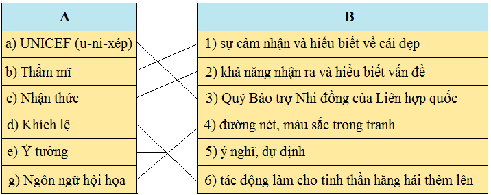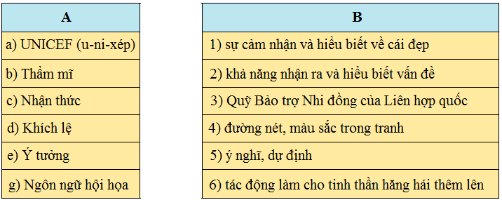 Chọn lời giải nghĩa ở cột B phù hợp với từ ngữ ở cột A.