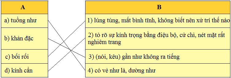 Chọn lời giải nghĩa ở cột B phù hợp với từ ngữ ở cột A: