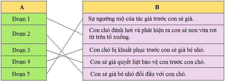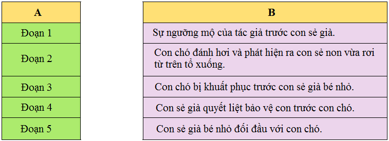 1) Nối đoạn ở cột A phù hợp với ý ở cột B dưới đây theo nội dung của câu chuyện Con sẻ: