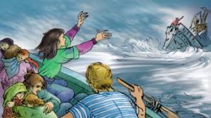 Chiếc xuồng cuối cùng được thả xuống. AI đó kêu lên: “Còn chỗ cho một đứa bé.” Hai đứa trẻ sực tỉnh, lao ra.