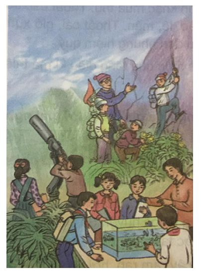 – Để tìm hiếu thế giới xung quanh, các bạn cùng thảo luận quan sát các sinh vật sống trong môi trường nước; các bạn dùng kính viễn vọng để quan sát các hành tinh trong vũ trụ; các bạn thực tập chinh phục các đỉnh núi.