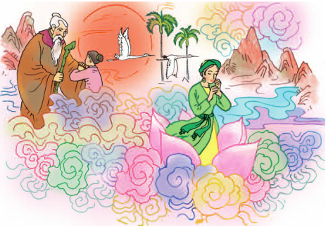 a) Những người trong tranh là ông tiên, cô gái.