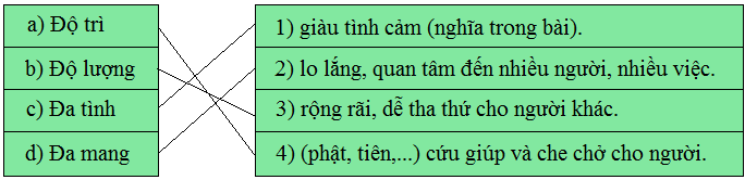 Chọn lời giải thích ở cột phải phù hợp với từ ngữ ở cột trái: