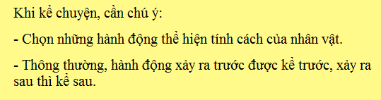 3) Các hành động nói trên được kể theo thứ tự: hành động xảy ra trước thì kể trước, hành động xảy ra sau thì kể sau.