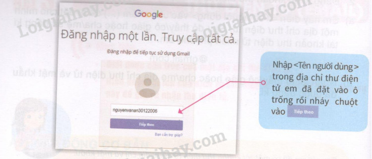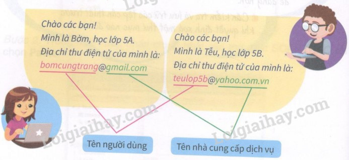 a) Em hãy điền <Tên người dùng> vào chỗ chấm (. . .) để tự đặt cho mình một địa chỉ thư điện tử. Sau đó thầy/ cô giáo hoặc cha/ mẹ sẽ đăng kí tài khoản thư điện tử miễn phí cho em.
